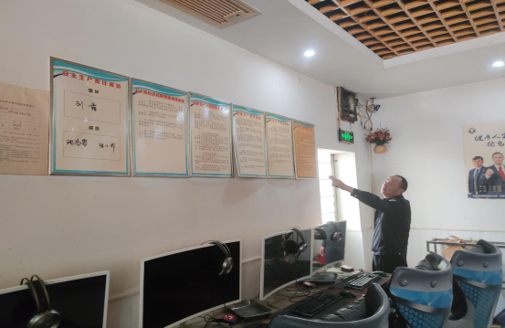 执法人员检查网吧经营场所安全生产制度落实情况