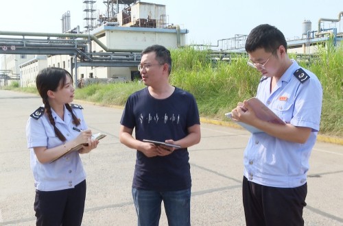 在湖南比德生化科技股份有限公司,市税务局现代石化产业链咨询服务团队正在为公司财务人员进行政策辅导。针对企业提出的研发费用税前加计扣除、组合式税费支持政策等问题,团队现场为企业答疑解难。在税务部门辅导下,该公司今年共办理出口退税近1200万元。