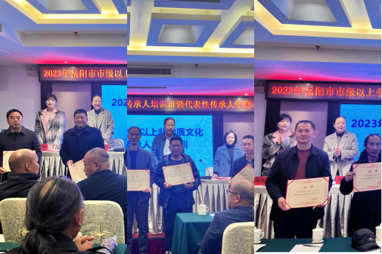 岳阳市局为临湘新晋市级非遗代表性传承人颁发证书
