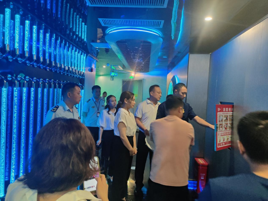 方虹副市长一行先后来到凯蒂娅娱乐城、铭乐娱乐城、 市群辉歌舞房、大咖电竞网络会所、欢漫电竞酒店、萌麦电竞馆等文化经营场所,现场查阅相关台帐资料,检查经营场所证照、消防通道、消防设施设备及消防培训相关情况。