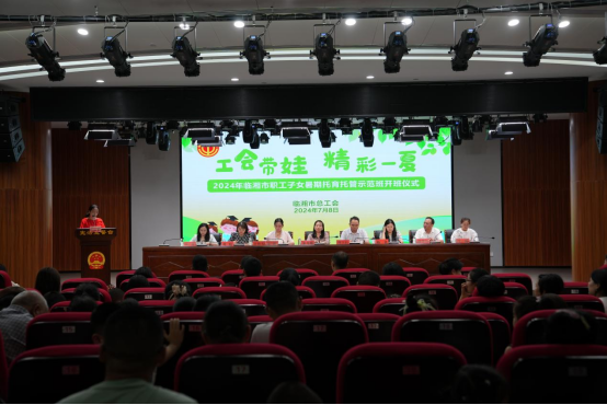 7月8日,临湘市职工子女暑期托育托管示范班在临湘市文化艺术中心正式开班,岳阳市总工会副主席朱飞鹰,临湘市委常委、组织部部长、总工会主席刘立红,临湘市人民政府副市长方虹等领导出席了开班仪式。