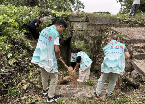 志愿者们在临湘市羊楼司镇、詹桥镇,对国家级文物保护单位龙窖山堆石墓群中的石窝山堆石遗址、省级文物保护单位团湾雁峰关和壁山革命烈士墓的周边环境开展清洁行动。对路边杂草、台阶落叶进行清除,污水沟的淤泥垃圾进行疏通。此次博物馆开展的文旅志愿服务活动既有益于文物单位的保护,又能进一步优化当地的营商环境,助力文旅融合高质量发展。