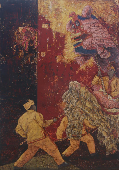 《忆·临湘天狮》表现了非物质文化遗产代表项目临湘天狮舞的艺术美感,通过漆画语言鲜明的色彩使天狮的形象更加生动立体,为临湘天狮的发展提供了一个极具表现力的宣传载体。