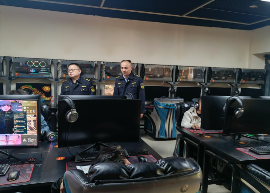 执法人员检查网吧经营场所是否有违法违规经营行为