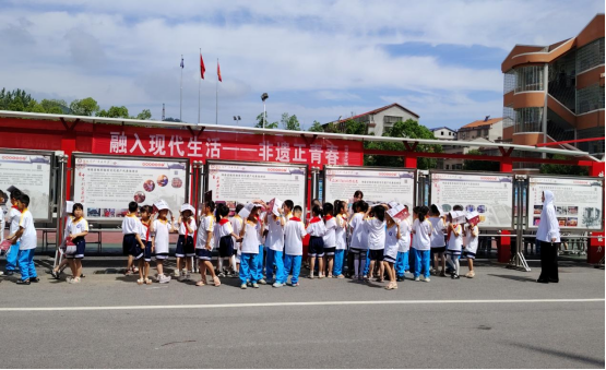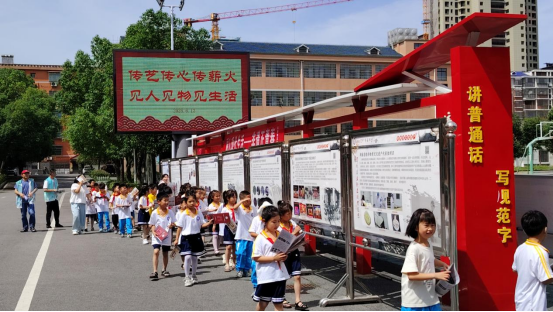 在学校统一组织下,全校2300多名师生有序观展,临湘市文化馆(临湘市非保中心)志愿者积极与学生进行互动,认真回答孩子们的提问,满足他们的求知欲望。同时,通过展板宣传、资料发放等形式向学生普及非遗知识及文化遗产保护的相关法律法规,引导学生关注传统文化与非遗相关书籍,激发阅读兴趣,拓宽学生知识视野。