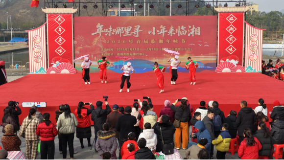 非遗领衔,乡土共鸣。各乡镇精心筹备的特色节目轮番登台,民俗韵味与乡土风情交织,既有世代传承的老把式,也有新编新演的乡村故事,丰富了群众的节日生活,也让年味在鼓点与舞步中愈发醇厚。会场上空年味蒸腾,年货售卖区内,临湘特色农产好物琳琅满目,从腊味山货到时令鲜食,皆是地地道道的家乡味道,人们穿梭挑选,笑意盈盈。