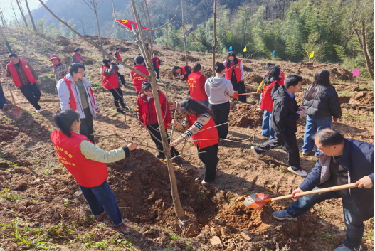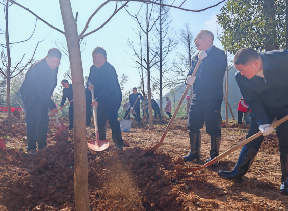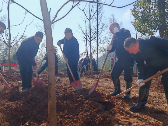 山间微风轻拂,红旗猎猎作响。大家一边植树,一边交流生态保护心得,畅谈绿色发展愿景,现场洋溢着团结协作、奋发向上的浓厚氛围。经过一上午的辛勤劳作,数千株新苗扎根沃土,为临湘生态屏障筑牢了新的绿色根基,也为春日山林勾勒出充满希望的生机轮廓。