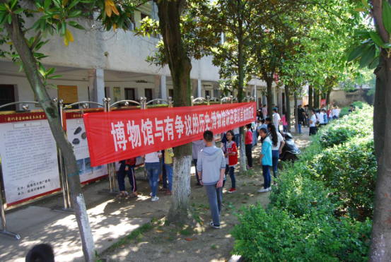 本次活动展览主题—《我们身边的文化遗产》,长塘中学全校师生有次序组织参观,学生们列队认真听取我馆讲解员的讲解,精彩之处掌声不断。活动期间,在长塘中学校园醒目位置悬挂2017年国际博物馆日主题的宣传横幅,户外宣传栏张贴展讯海报,宣传台免费发放展览宣传册,为长塘中学师生奉上五彩缤纷的博物馆文化盛宴,因活动丰富多彩、特色鲜明、参与性强,宣传准确及时到位,取得了圆满的成效。
