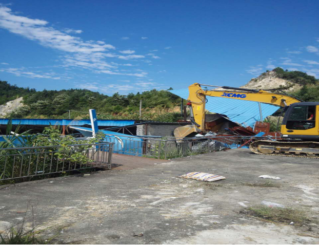 关乎民生无小事,何况违法违规!市国土局、公安局、詹桥镇党委政府三方会商,共同执法,决定对该厂强制拆除。制定了《铣厂强制拆除预案》、《詹桥镇矿山打非治违专项行动工作方案》。对现场的“警戒安保、突发预警、应急响应、职责分工、后勤保障、监督宣传”等6个重要环节进行了合理安排;整个行动由詹桥镇具体实施、国土局大力配合、公安干警协调维稳、镇村干部共同参与,确保了拆违工作有序、顺利完成。当挖机铲下最后一个铁棚时,现场围观群众不由地响起了热烈的欢呼声、掌声!