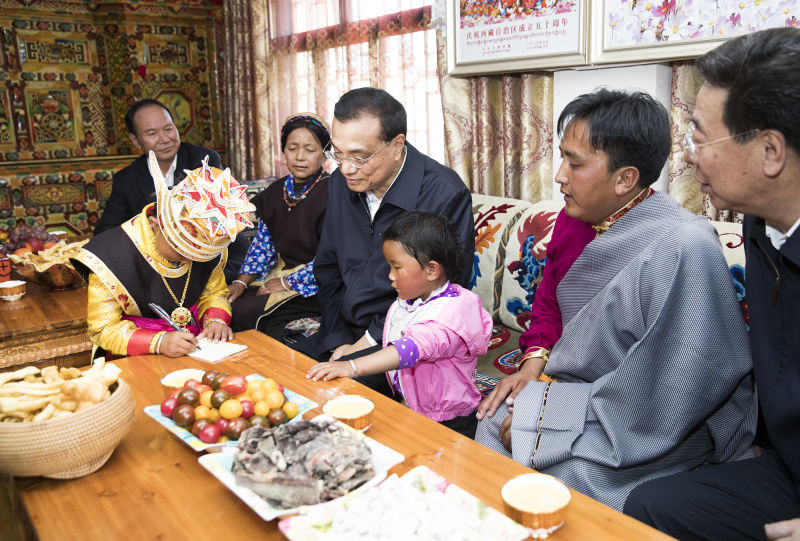 李克强总理7月25日到西藏自治区考察。在林芝市西嘎门巴村村民贡桑家,总理轻轻拍着贡桑6岁女儿益西卓玛的肩,问她上学了吗。小女孩脆声回答,上幼儿园大班。总理又问,能不能写几个字给我看看?小卓玛一笔一划在本子上分别用汉语和藏语写下自己的名字,并把它作为礼物送给总理爷爷。得知益西卓玛在藏语中是“智慧仙女”的意思,李克强笑着说,祝你好好学习,长大后就像你的名字一样智慧美丽。