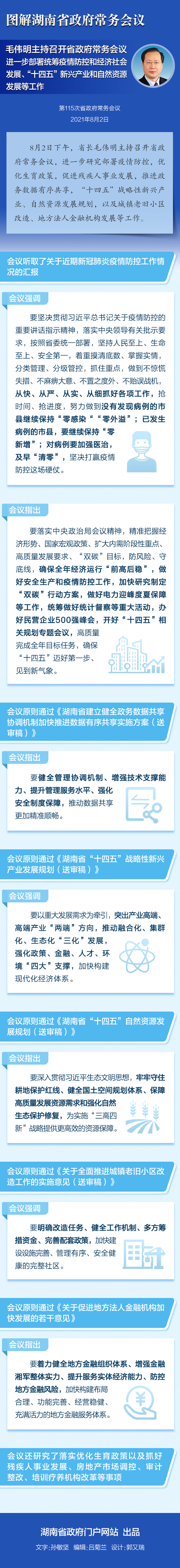 8月2日下午,省长毛伟明主持召开省政府常务会议,进一步研究部署疫情防控,优化生育政策,促进残疾人事业发展,推进政务数据有序共享,“十四五”战略性新兴产业、自然资源发展规划,以及城镇老旧小区改造、地方法人金融机构发展等工作。