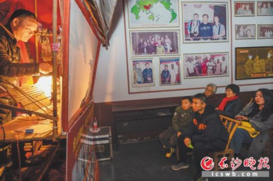 昨日下午,新康戏乡皮影馆,游客们正在观看皮影戏。