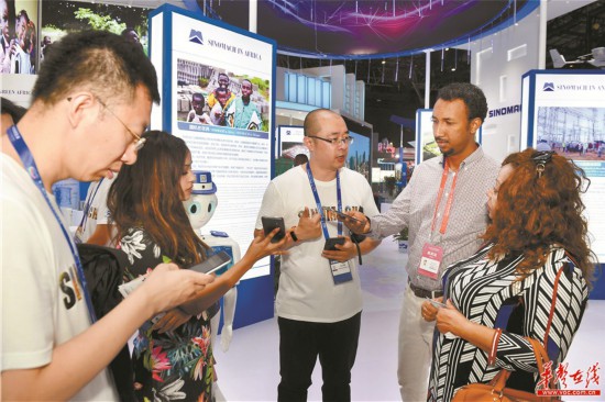 6月26日,湖南国际会展中心(芒果馆),中非经贸博览会展厅,参展商和嘉宾在进行交流。当天,第一届中非经贸博览会展览工作全部就绪。湖南日报·华声在线记者 郭立亮 摄