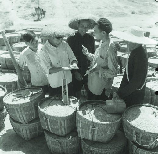 1955年9月1日,湘阴县洞庭湖农业生产合作社农民在送交早稻粮。(资料照片)张云龙 摄