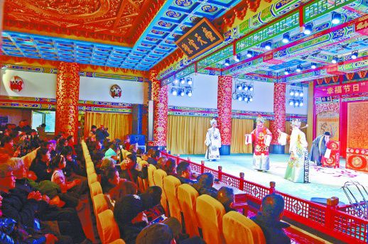 2月16日,长沙湘京苑小剧场内,湖南省京剧保护传承中心的演员表演《龙凤呈祥》。当天,该中心开展了“幸福节日”新年文艺惠民演出。记者 刘谦 徐行 摄影报道