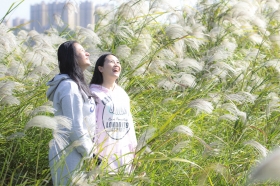 11月19日,长沙阳光灿烂,河西江滩公园里盛开的芦苇花吸引了不少市民。图/记者谢长贵