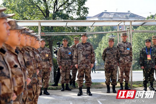5日,湖南省军区司令员毕毅(中)来到省军区综合训练队新兵连看望新兵。