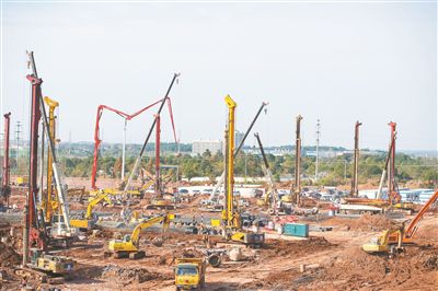 12月5日,位于浏阳经开区的长沙惠科第8.6代超高清新型显示器件生产线项目施工现场一派繁忙。张迪 摄