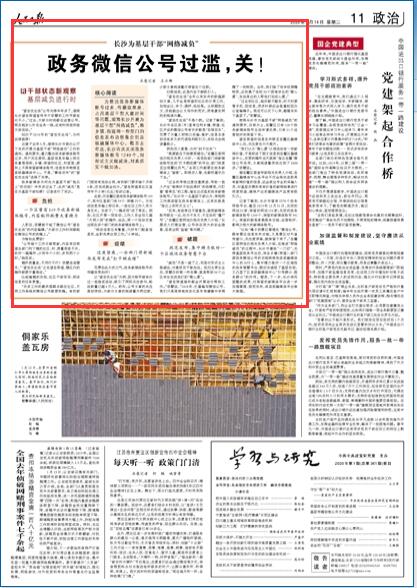 为整治政务新媒体账号过多、传播效果差、占用基层干部大量时间等问题,湖南长沙开展为基层干部“网络减负”,将乡镇、街道和一些部门的信息发布功能集合到县级融媒体中心。截至去年底,长沙市共关闭政务新媒体账号1249个,对形式主义做减法,对真抓实干做加法。