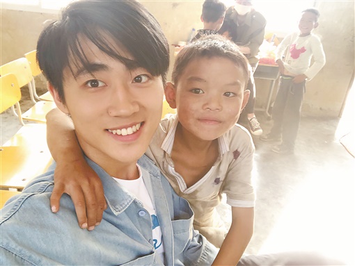 刘逸涵在凤凰县两林乡高岩小学支教时,和学生在一起。