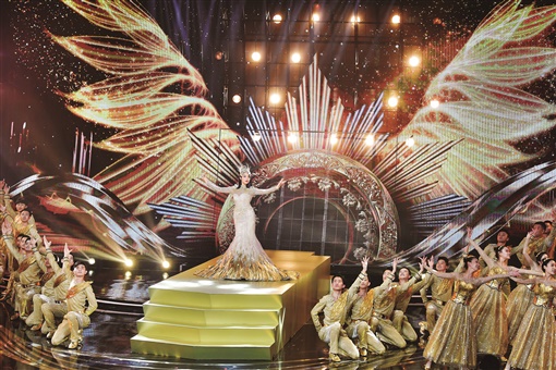 除了舞台创新吸引人眼球,今年的金鹰女神宋茜也首次在开幕式压轴亮相。她身穿由中国知名设计师彭晶倾力打造的发光礼服,配合舞台灯光释放出“金色”光芒,整体流光溢彩,吸睛夺目。(记者 陈薇 袁隽永)
