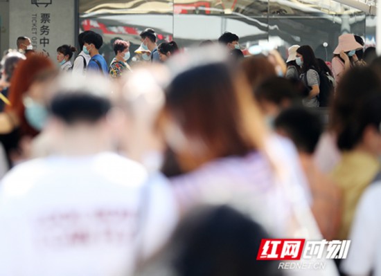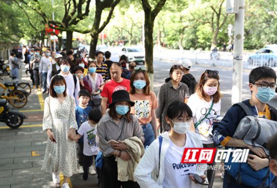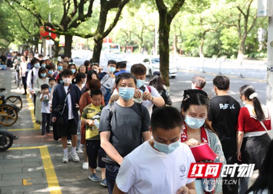 湖南省博物馆门外排起了长龙,等待进馆的队伍一直沿着东风路排到了烈士公园西门。