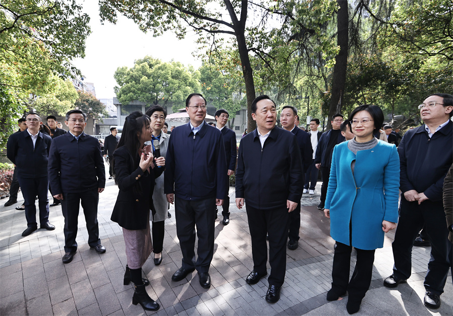 3月27日,毛伟明、王浩一行在杭州市西湖区翠苑一区社区了解数字社区建设情况。