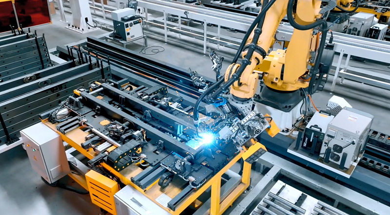 再想突破,还得提升科技自主创新能力。成立并扩充企业研究中心,积极补齐创新人才短板……在2022年企业自主设计、建造、优化的四期工厂里,创新成果随处可见。数字产线上,检测校形分拣工位里,搬运机器人抓取刚刚完成焊接的矩形管,放置到激光检测设备前,一次性完成测距、液压校形,确保焊接直线度始终控制在1毫米以内——精度较改造前提升近10倍。