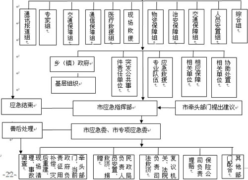 (4)各乡镇、街道办事处突发事件应急预案(以下简称乡镇应急预案)。乡镇应急预案是乡镇人民政府为应对本行政区域内发生的各类突发事件,最大程度地减少突发事件损害而预先制定的工作方案。主要包括乡镇(街道)办事处应急预案、村(社区)、企业、学校应急预案。乡镇突发事件应急预案由乡镇牵头,组织机关基层组织制定,并汇总报市人民政府及主管部门备案。