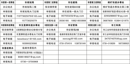 本轮巡察采取交叉巡察(即由岳阳市委巡察办安排其他县(市、区)巡察人员来我市巡察)和本地巡察两种方式,采取交叉巡察的单位是:市住建局、市规划局、五里牌街道办事处、桃矿街道办事处;采取本地巡察的单位是:市征管局、市工业和科技信息化局。巡察期间,巡察组将采取调查走访、民主测评、查阅资料、财务检查、个别谈话、受理举报等方法开展巡察工作。根据巡察工作职责,巡察组主要负责巡察被巡察单位领导班子及其成员和下属单位班子主要负责人涉及上述方面问题的来电来信来访举报。对有关个人诉求、征地拆迁、涉法涉诉等不属于巡察受理范围内的问题,将按照“分级负责、属地管理”原则,转交相关职能部门或被巡察单位办理。巡察组不干预被巡察单位的正常工作,不查办案件,不接受任何个人查询,也不负责向反映人反馈有关情况。
