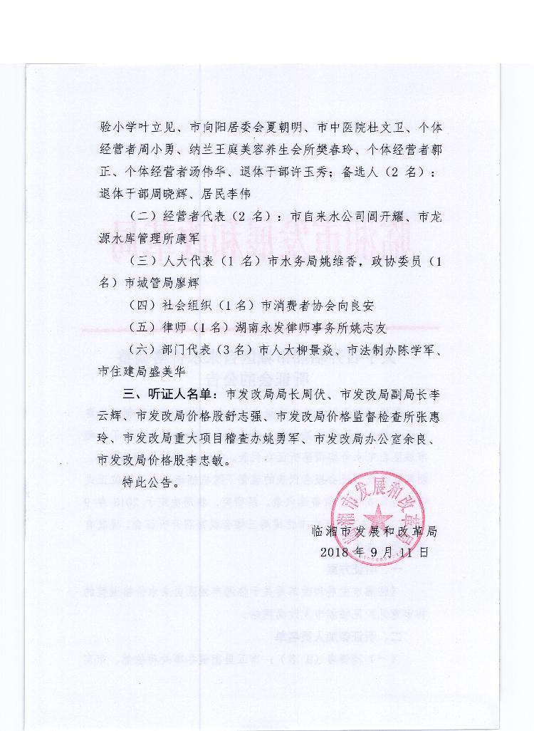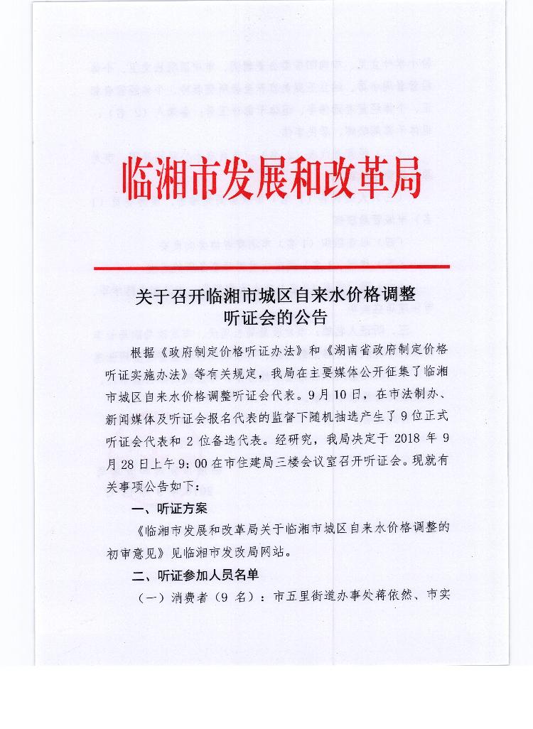 关于召开临湘市城区自来水价格调整听证会的公告