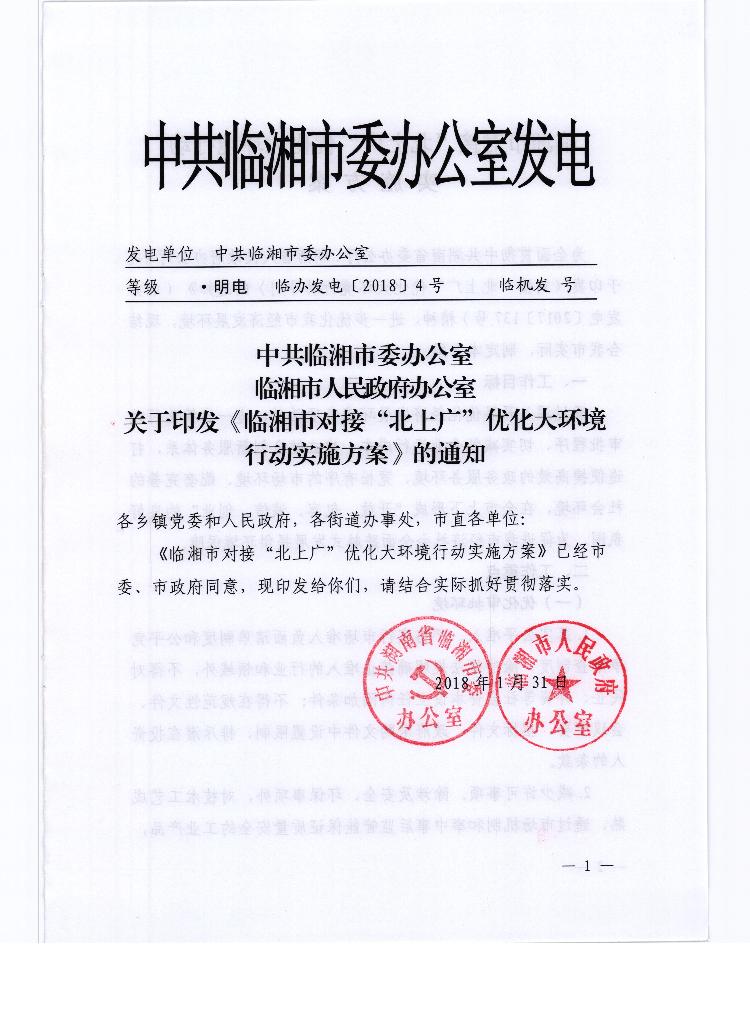 中共临湘市委办公室临湘市人民政府办公室关于印发《临湘市对接“北上广”优化大环境行动实施方案》的通知