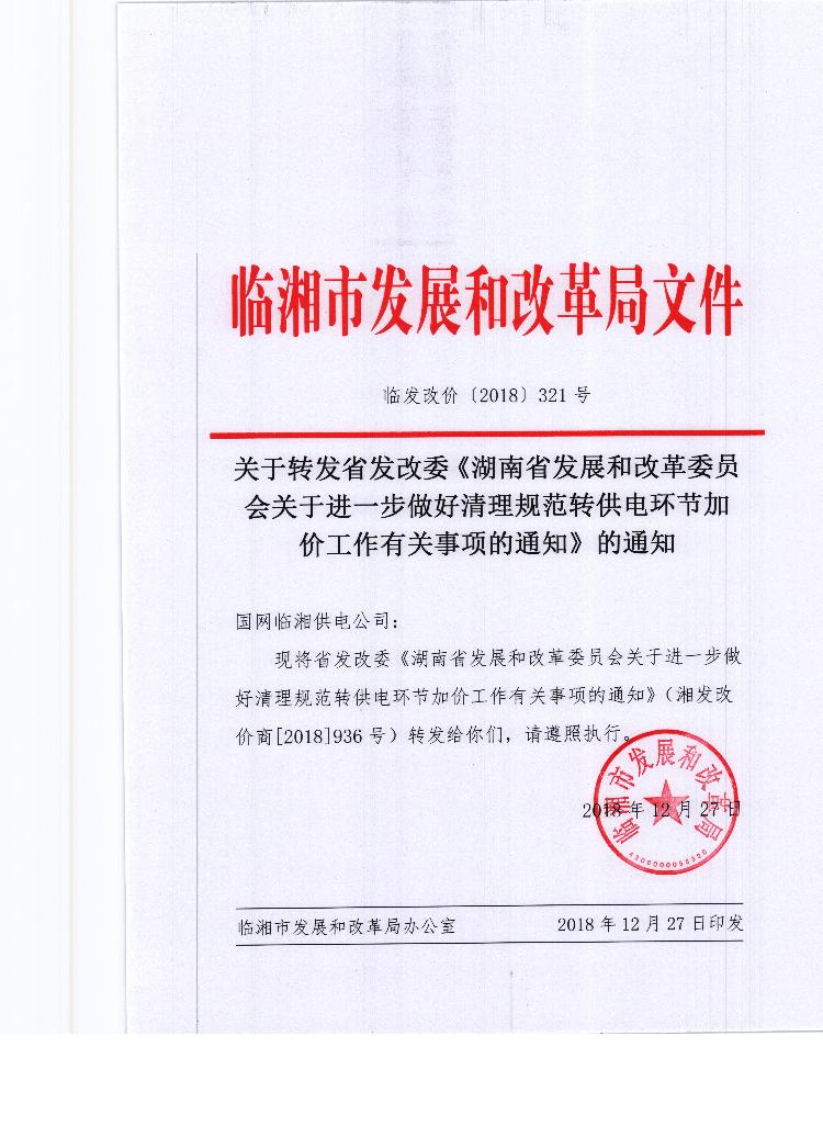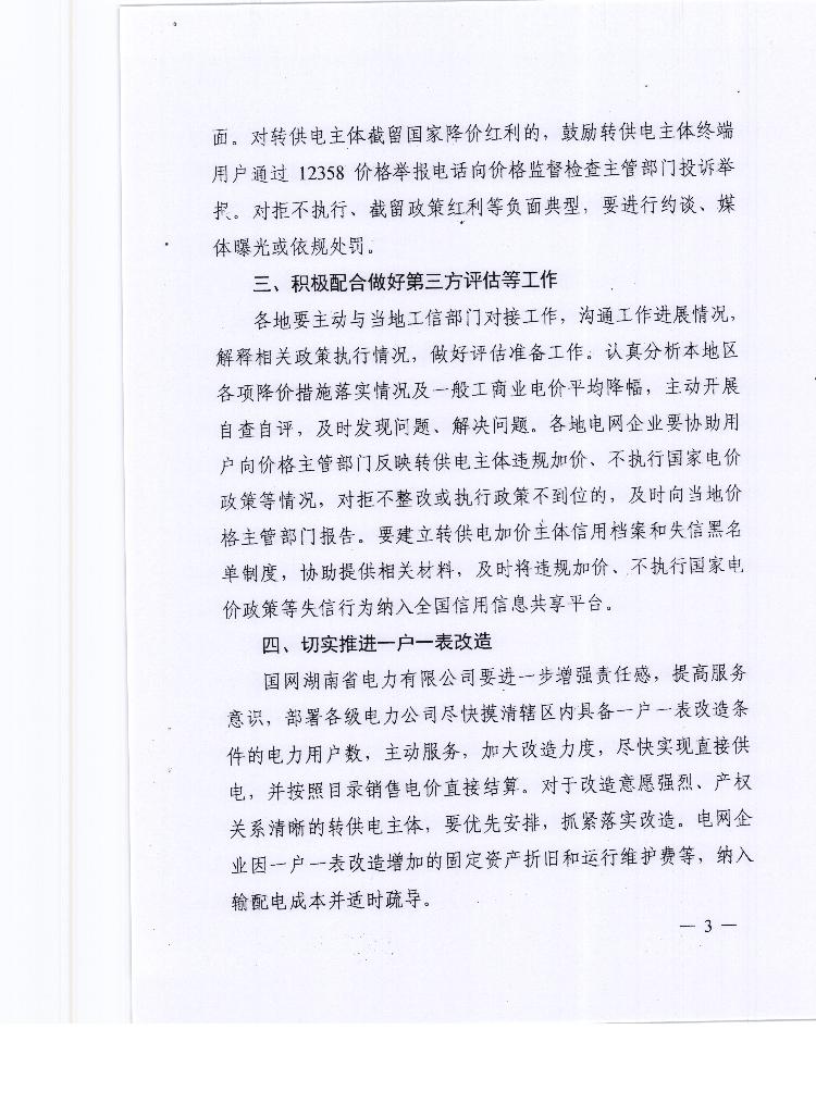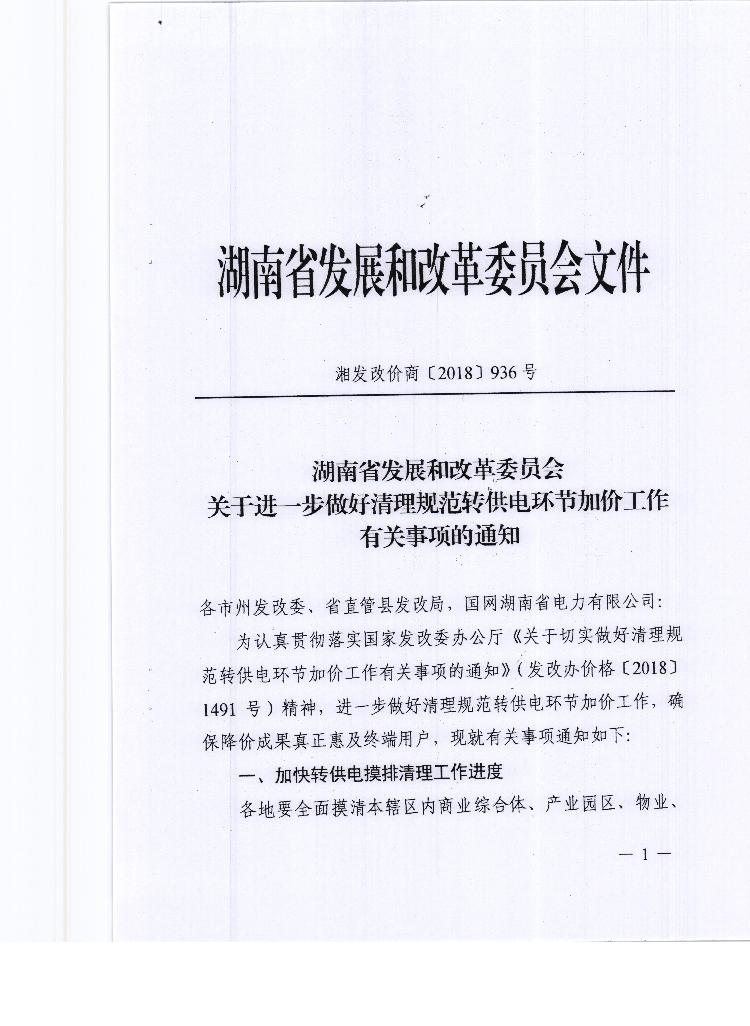关于转发省发改委《湖南省发展和改革委员会关于进一步做好清理规范转供电环节加价工作有关事项的通知》的通知