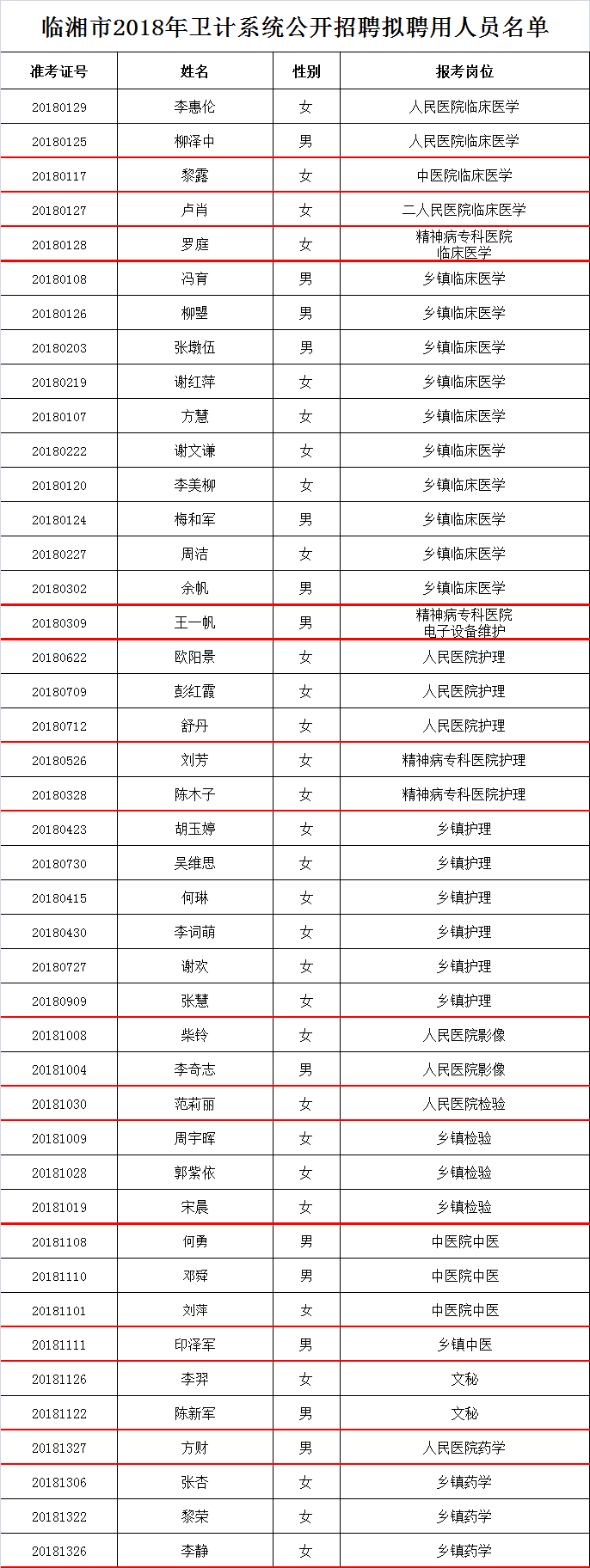 附:《临湘市2018年卫计系统公开招聘拟聘用人员名单》