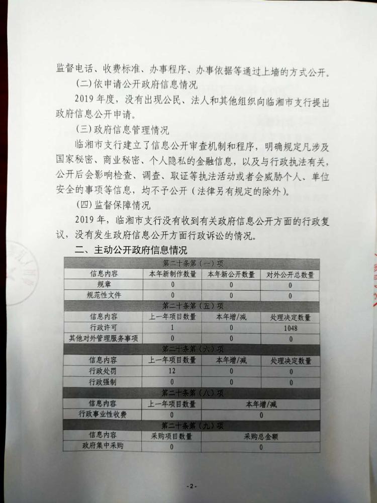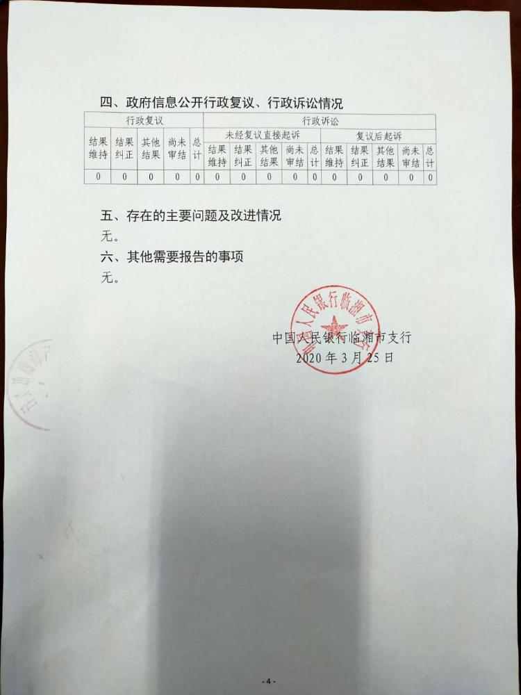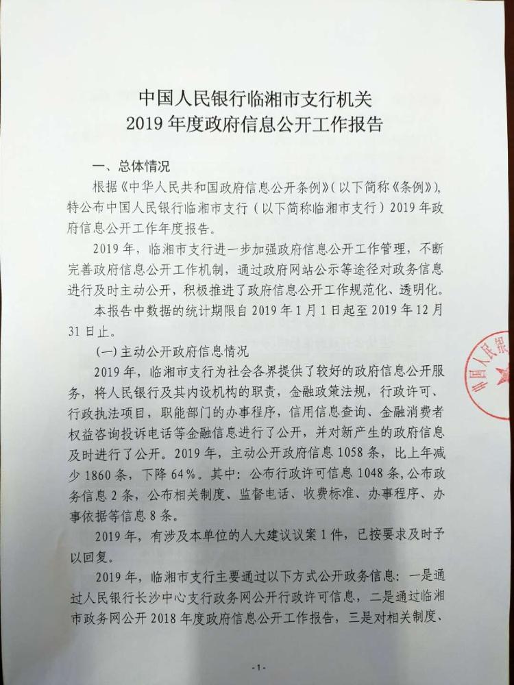 中国人民银行临湘市支行机关2019年政府信息公开工作报告