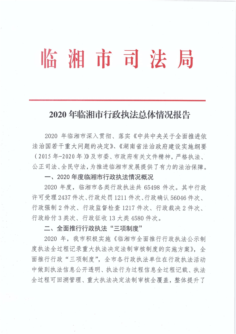 2020年临湘市行政执法总体情况报告