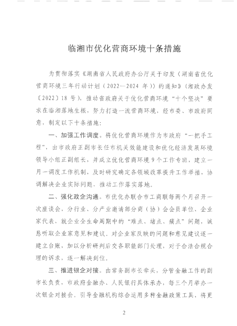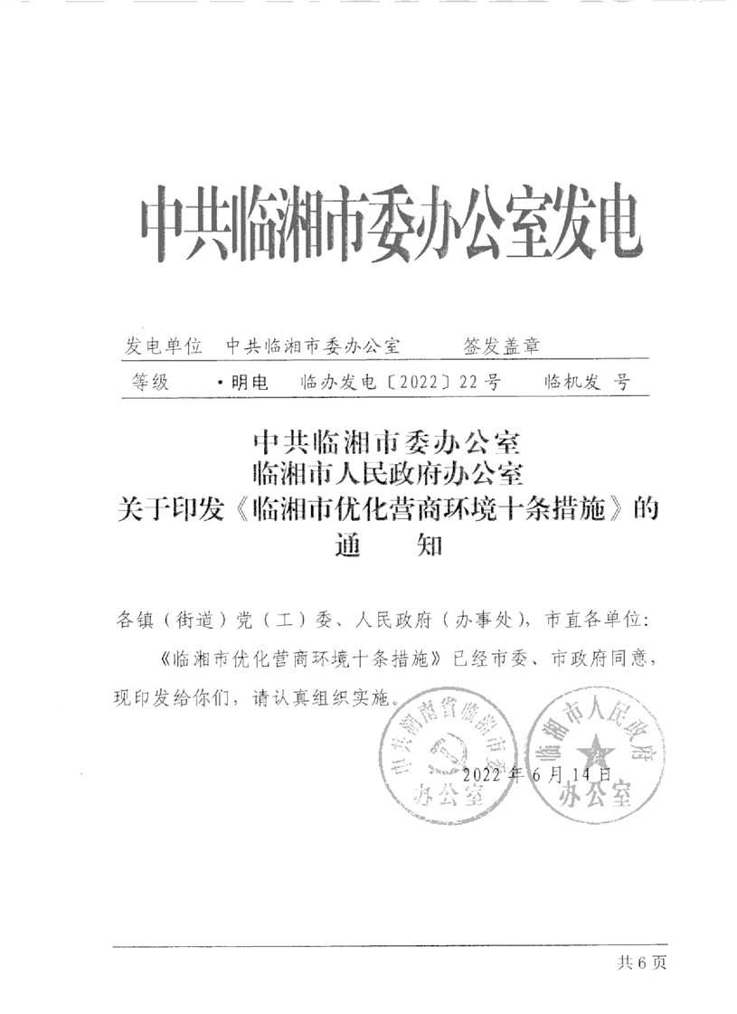 关于印发《临湘市优化营商环境十条措施》的通知