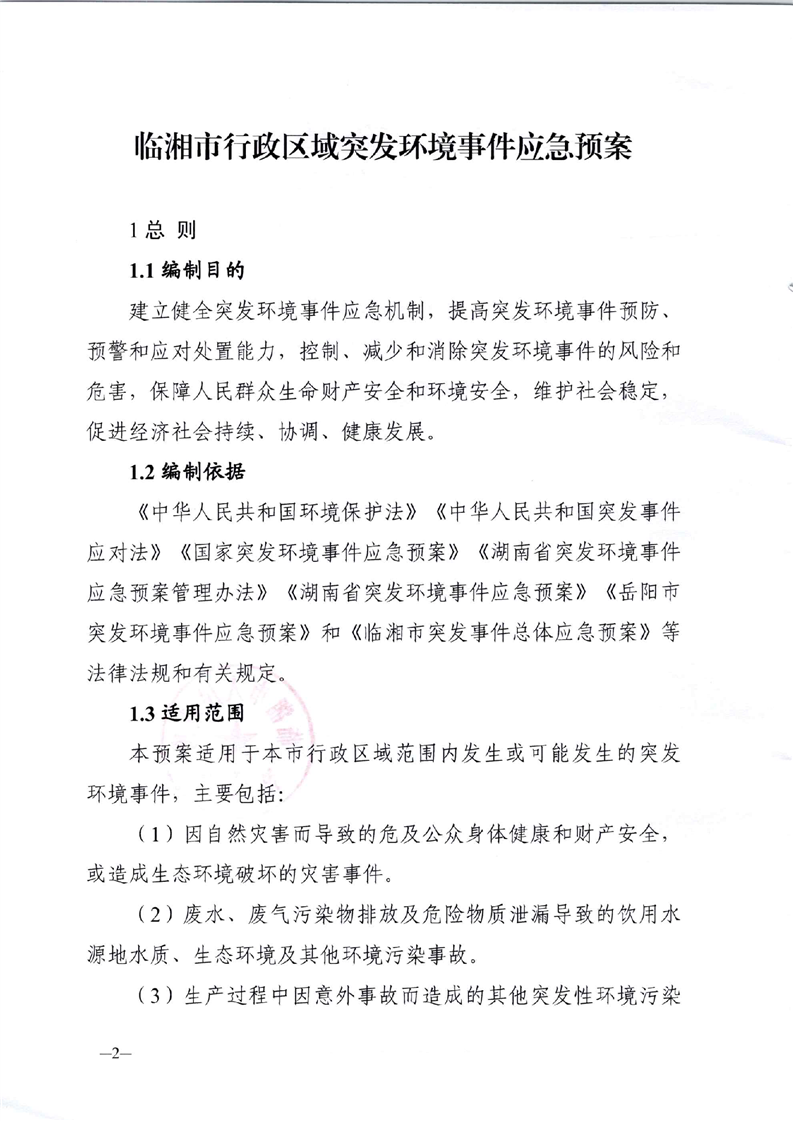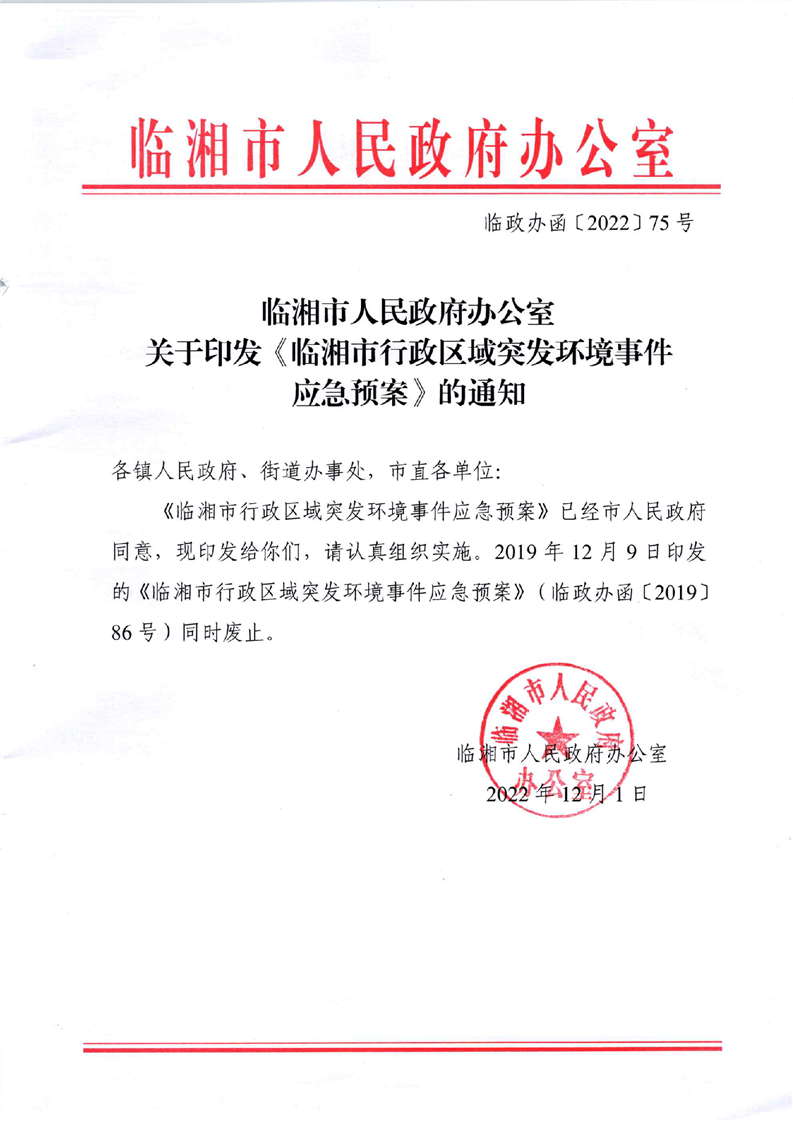 临湘市人民政府办公室关于印发《临湘市行政区域突发环境事件应急预案》的通知