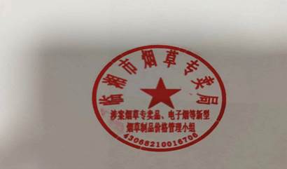 1、名称为“临湘市烟草专卖局涉案烟草专卖品、电子烟等新型烟草制品价格管理小组”,印章样式如下图: