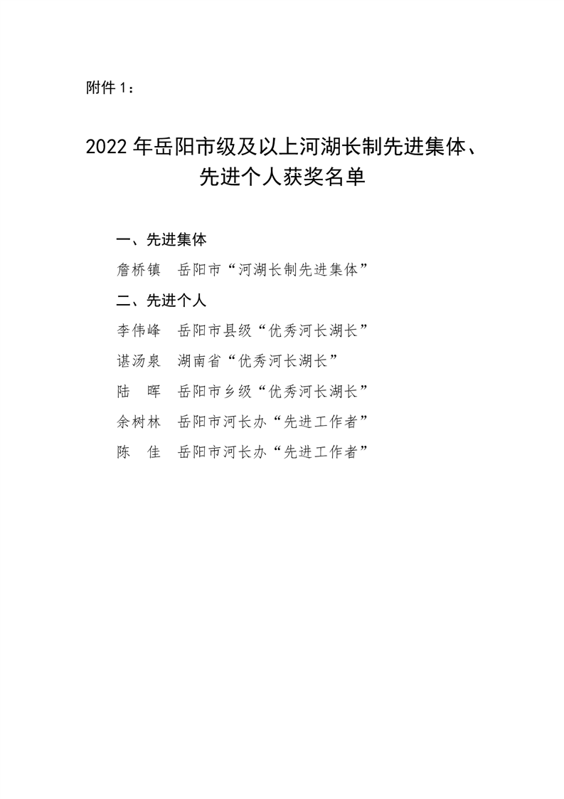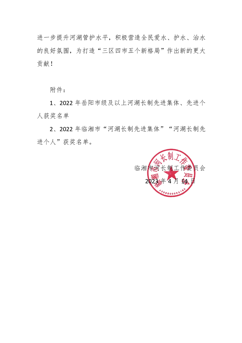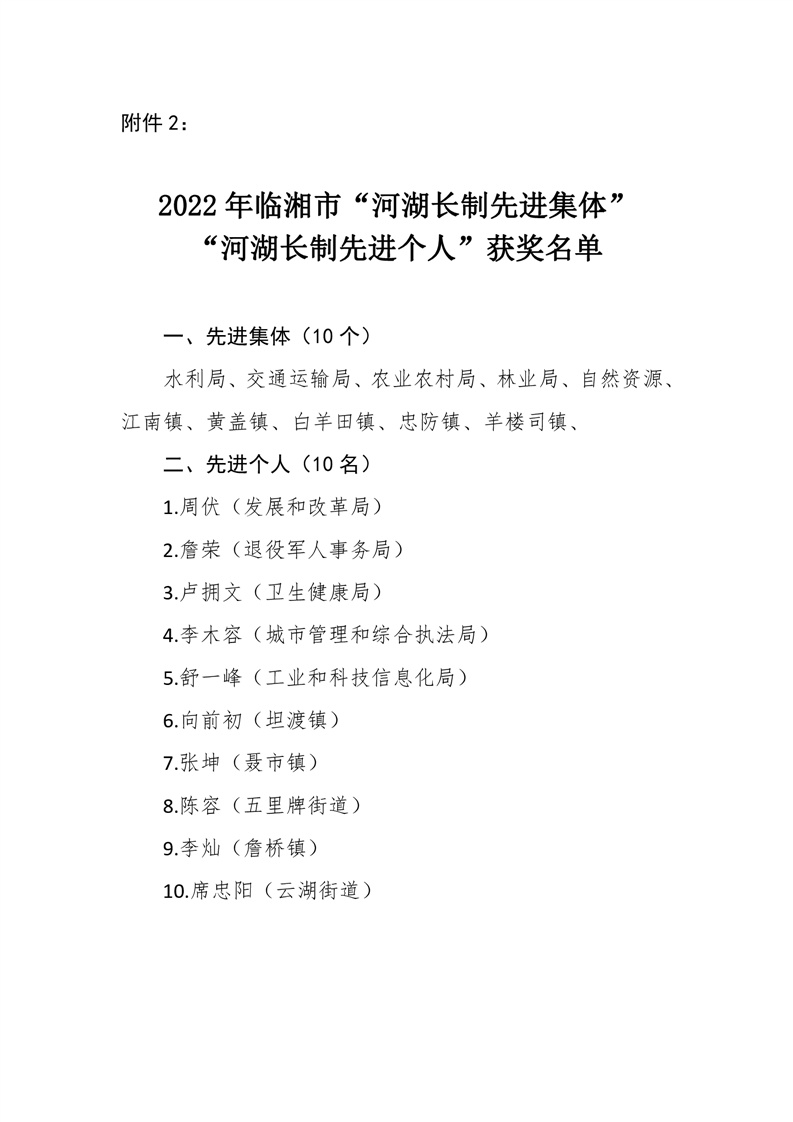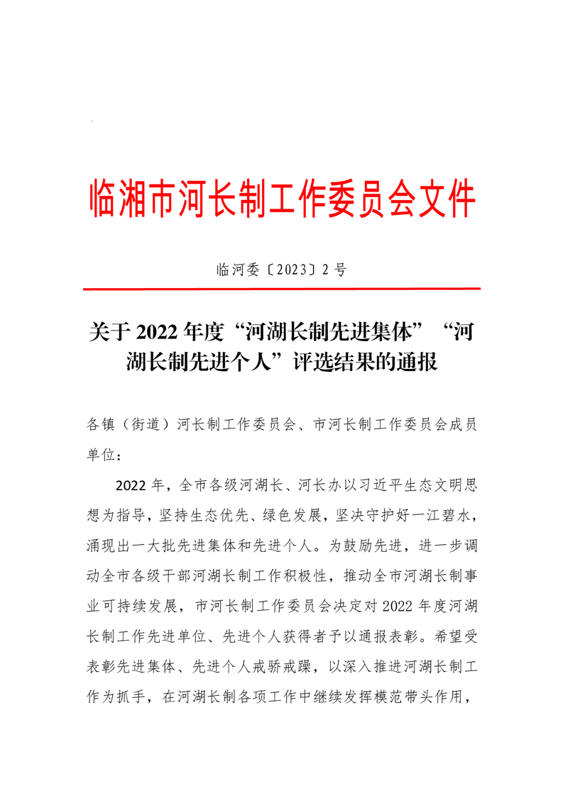 关于 2022 年度“河湖长制先进集体”“河 湖长制先进个人”评选结果的通报