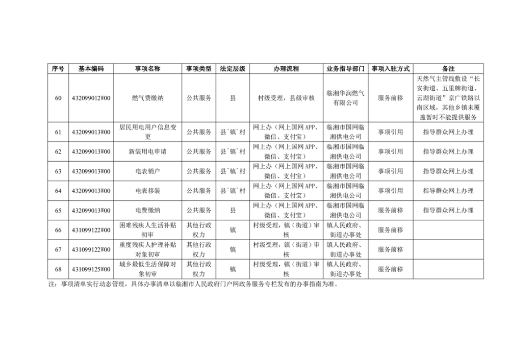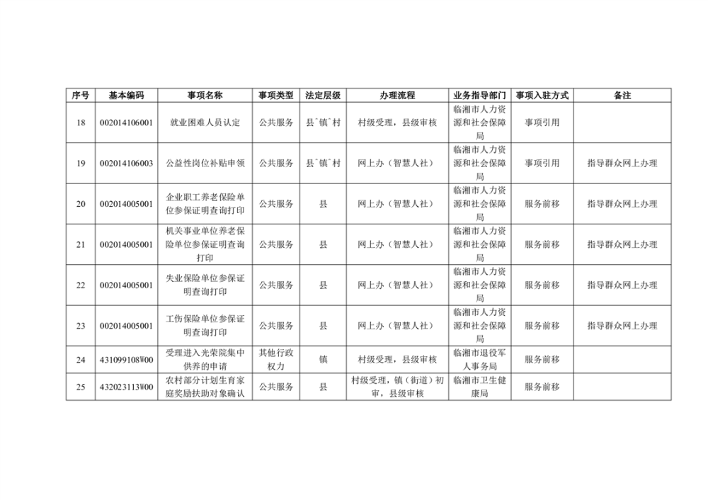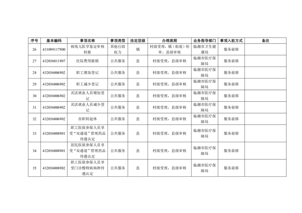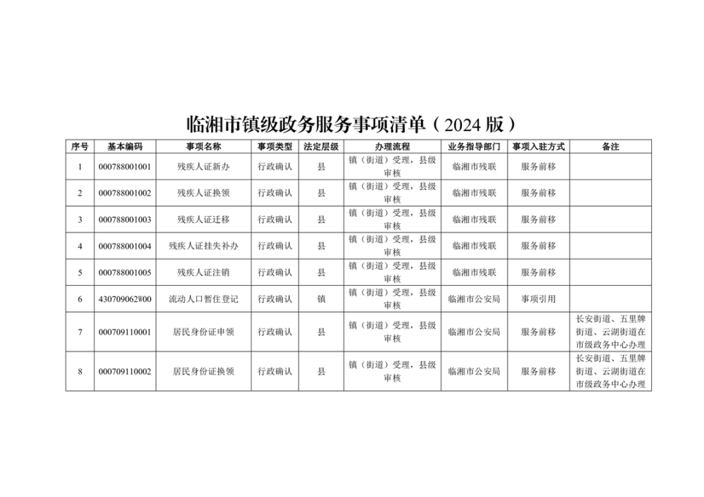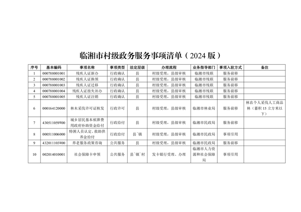 临湘市镇级政务服务事项清单(2024版)、临湘市村级政务服务事项清单(2024版)