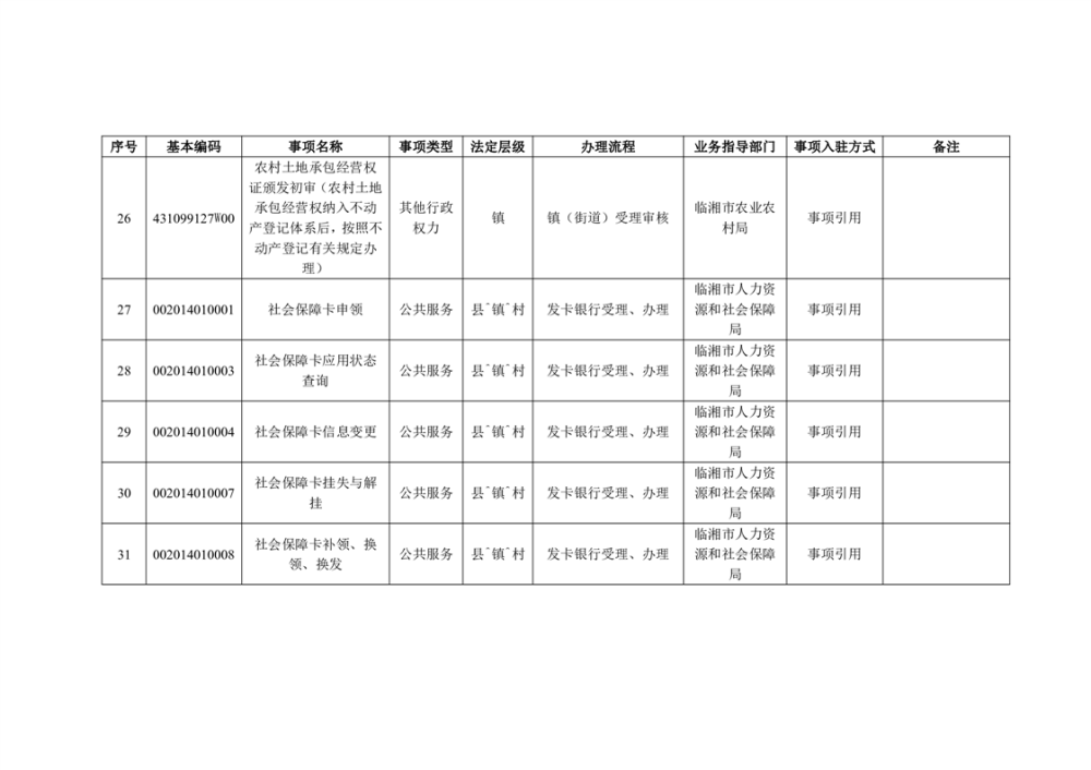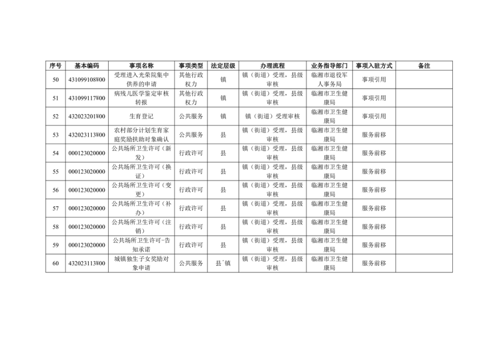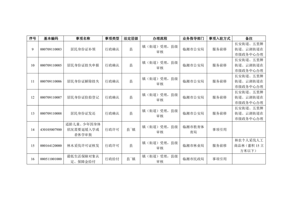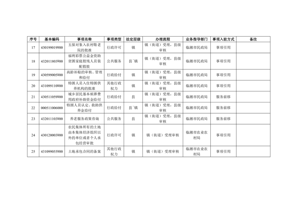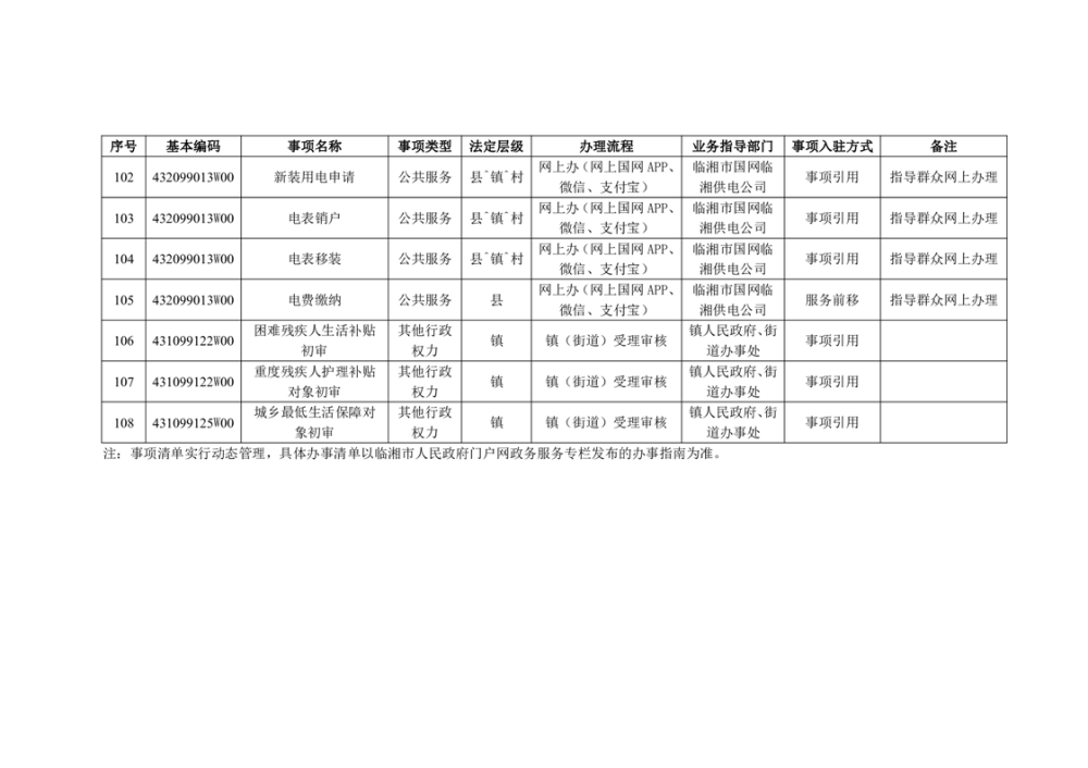 临湘市镇级政务服务事项清单(2024版)、临湘市村级政务服务事项清单(2024版)
