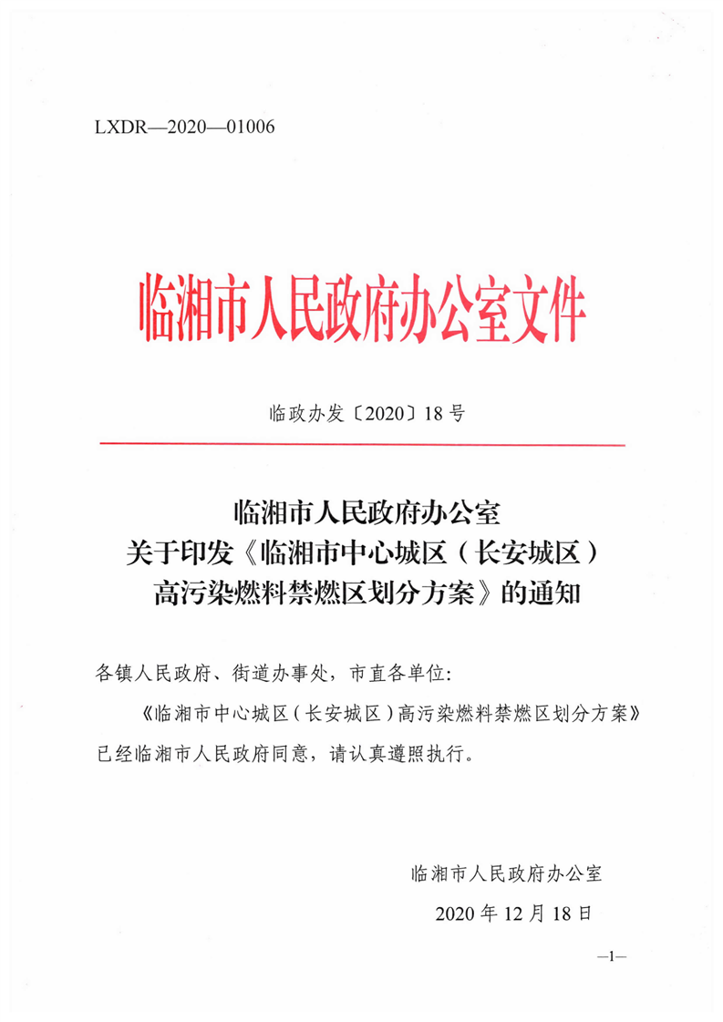 关于印发《临湘市中心城区(长安城区)高污染燃料禁燃区划分方案》的通知