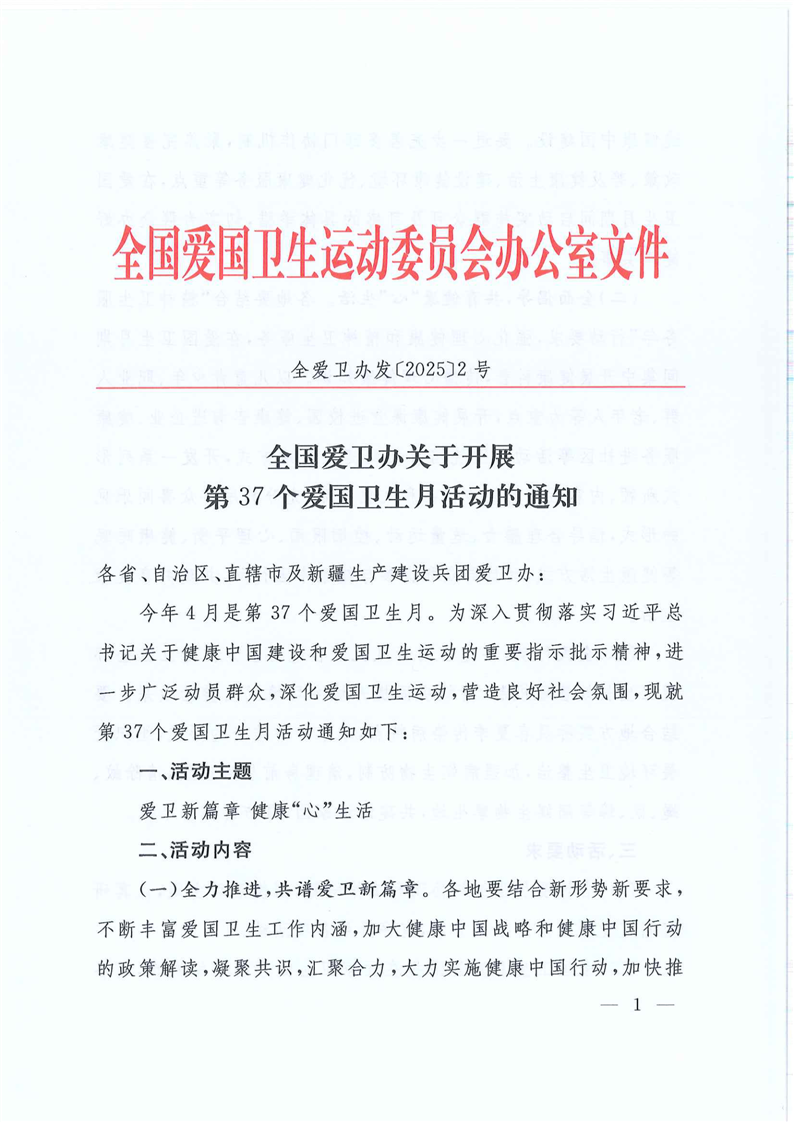 全国爱卫办关于开展第37个爱国卫生月活动的通知