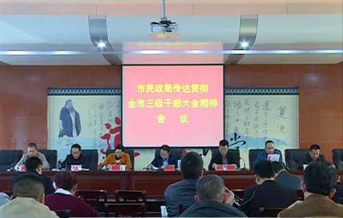 3月4日,市民政局召开干部职工大会,传达贯彻全市三级干部会议精神,安排部署今年工作。