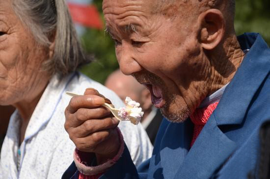 当记者告诉他,今天是来给他过生日、请他吃蛋糕时,老人突然停止了讲述,连声说了三个“好”字后,便不再言语,眼眶中的泪水不停的打转。