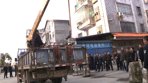 11月20日上午,市城市管理局针对最近接到市民的反映,组织力量对复兴路上的路障进行拆除。