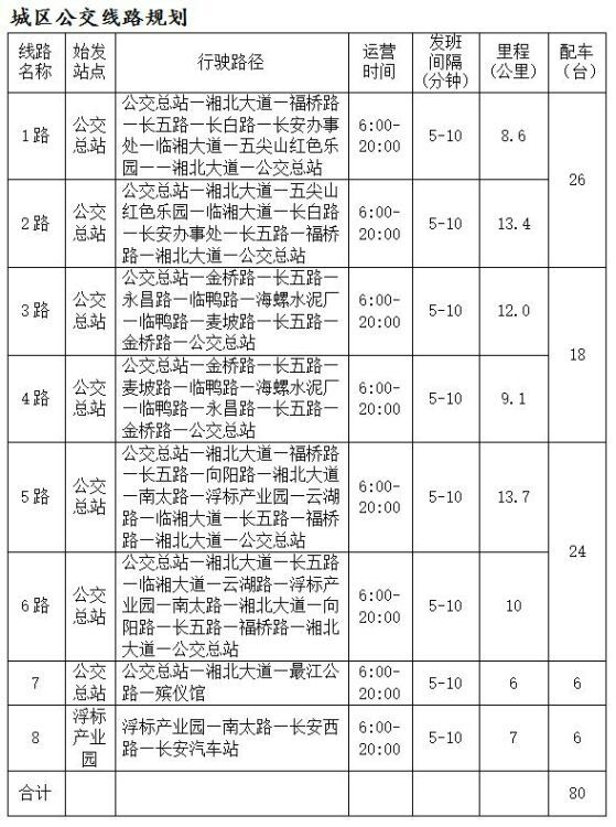 5、科学规划新线路。共规划设置8条公交线路,实现城区范围全覆盖。