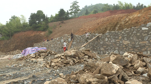 现场施工负责人周清富说:“整个项目挡土墙大概有110米长,高5米左右。我们正在加班加点,争取在6到7月份之前(将挡土墙)全部完工。”