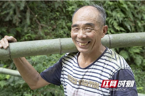 62岁的师中望是羊楼司镇的一位竹农,皮肤黝黑的他每天穿梭在竹林间。选竹、砍竹、削竹,一气呵成。“我种了40年竹子,砍了40年竹子,靠竹子活了一辈子。”师中望看着满山的竹林,笑着说:“跟竹子的感情深哦,看着他们把我种的一根根竹子做成漂亮的椅子、凳子,还有各种工艺品,卖到好多地方,开心呐!”
